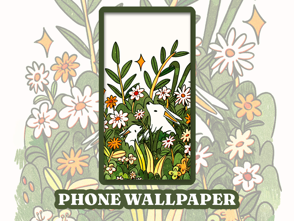 A cute phone wallpaper with two bunnies in some flowers! It is extra tall (with lots of white space at the top) so you can adjust placement depending on where your clock numbers go!