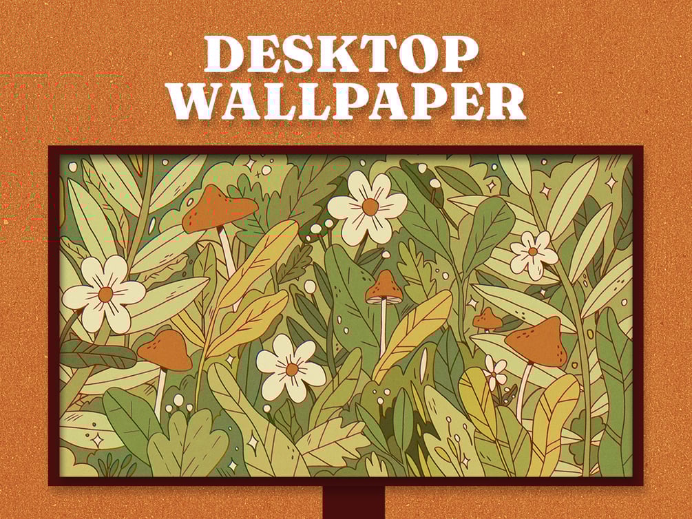 Cozy Autumn Forest Desktop Wallpaper, Mushrooms Digital Drawing!